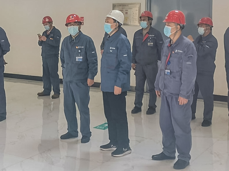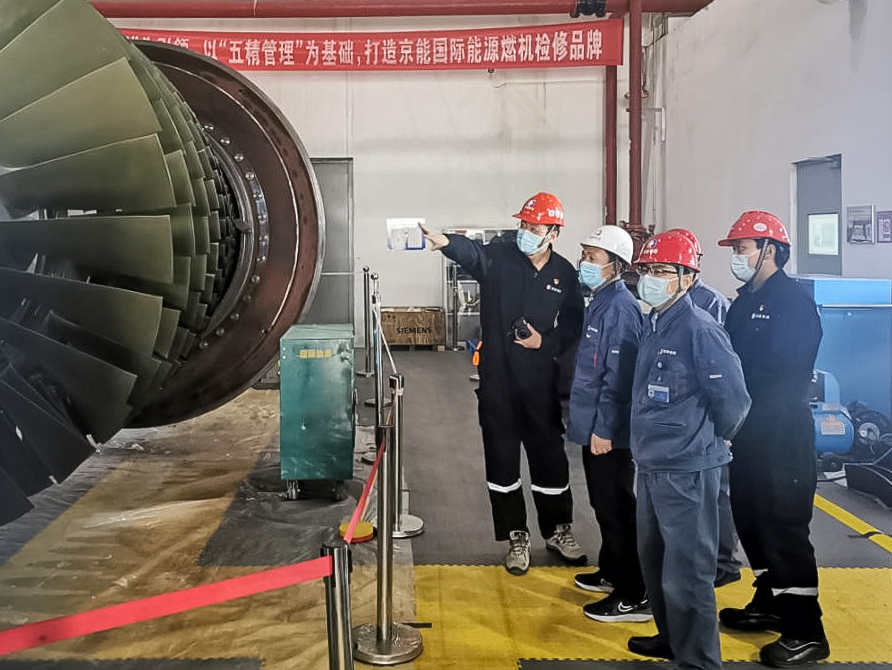 4月21日,,,,,,,bg大游清洁能源副总司理赵志刚一行到京西热电1号燃机磨练现场调研清静、环保、质量、疫情防控事情。。。。。。京西热电党委书记、执行董事杜葆强,,,,,,,党务副书记、总司理马万军,,,,,,,副总司理李永刚陪同调研。。。。。。