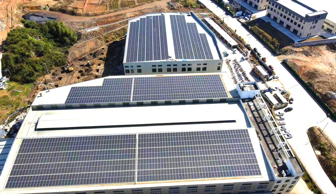 项目位于宁德市柘荣县城郊乡刀剪园区,,,,,,装机容量1.29MW,,,,,,使用业主厂房空余屋顶建设漫衍式光伏发电系统,,,,,,年可发绿电145万kWh,,,,,,减排二氧化碳近1445.6吨,,,,,,并网后将增进地方经济可一连生长。。。。。