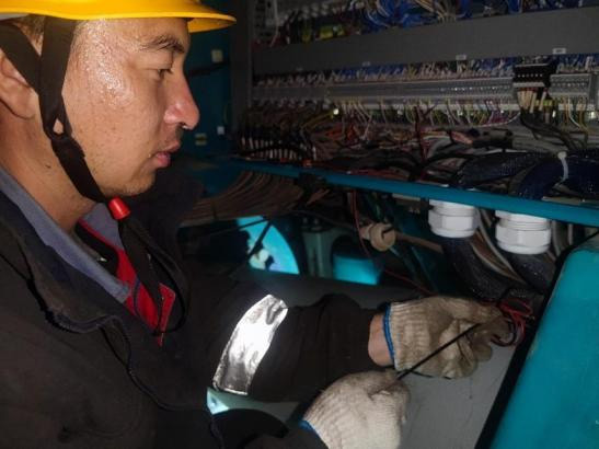 文贡乌拉景物电站的赵彦广和他的同伴钻进了风机机舱内,,,在这里,,,他们要把需要替换的发电机外凉电扇拆除下来。。;;;;;;;漳诘目占渌淙挥20平方米左右,,,但可供磨练的空间却只有不到5平方米,,,但许多事情都只能在个仅容得下一小我私家的狭窄空间里举行,,,历程中每一小我私家都需要战战兢兢地重复调解作业位置。。。二人花了近2小时,,,总算将这个一百多公斤的发电机外凉电扇替换完毕。。。从机舱内出来的时间,,,两人已经是全身汗水。。。赵彦广说:“在回家的路上,,,正好能看到路灯全都亮起来的那一刻,,,那时想到这万家灯火中也有自己的一点力,,,心里还挺知足、挺兴奋的。。。”