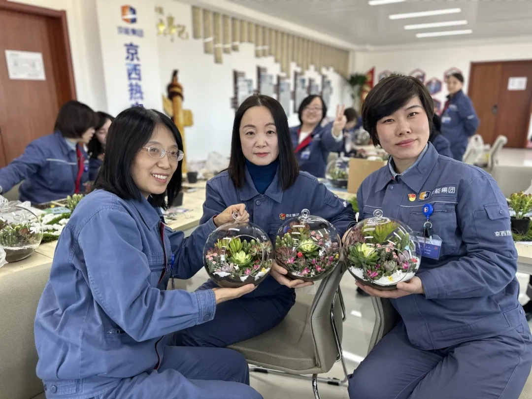 京丰燃气开展“‘碳’索未来,,,,,,巾帼偕行”三八节活动,,,,,,一展“她”能量,,,,,,一睹“她”风范。。。女职工们聚在一起莳植多肉,,,,,,匠人精神在细节中彰显,,,,,,承载着女职工们对双碳允许的生动注解,,,,,,也诠释着减碳增绿的可一连生长理念。。。