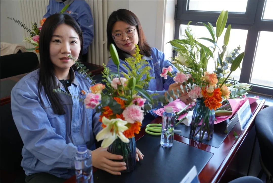 未来热电开展“春光有序·绽放青春”主题系列活动,,,,,,富厚女工精神文化生涯,,,,,,营造康健协调、温馨欢喜的节日气氛。。。在插花先生的引领下,,,,,,现场女工兴致盎然,,,,,,真切感受插花艺术的魅力,,,,,,在花香四溢和轻松愉悦的气氛中,,,,,,完成了一件件狼籍有致的插花作品。。。