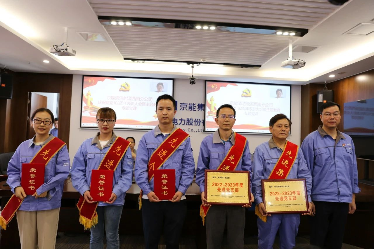 6月30日,,,,,,清洁能源西南分公司庆祝建党102周年暨“七一”表扬大会盛大召开,,,,,,表扬公司先进下层党组织、优异共产党员和优异党务事情者。。。重温了入党誓词,,,,,,公司党委书记唐任宗以《深学笃用知行合一,,,,,,把主题教育效果转化为推动公司转型生长的强盛动力》为题的专题党课报告,,,,,,把学习贯彻习近平新时代中国特色社会主义头脑的效果转化为坚定理想、磨炼党性和指导实践、推动公司转型生长的强鼎实力。。。